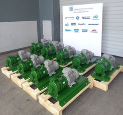 A high-specification set of centrifugal pumps from Dickow have been sent to a UK production facility operated by a multinational chemicals manufacturer. This package included a selection of pumps designed for demanding chemical transfer applications. Among the units supplied are four KMB h 26/170 magnetically driven centrifugal pumps, each fitted with a 4 kW, 2-pole motor. These are specified for the safe transfer of silane (SiH₄)-based chemicals, operating at a flow rate of 5 m³/h against a discharge head of 30 m. In addition, three NCB h 32/165 mechanically sealed pumps have been provided for the handling of aqueous solutions. These are close-coupled to 5.5 kW, 2-pole motors and are designed to deliver approximately 15 m³/h at 30 m head. Completing the set are two NCB h 40/210 mechanically sealed pumps, each coupled to an 11 kW, 2-pole motor and specified to deliver CIP fluids at a rate of 20 m³/h against an estimated 33 m head. Dickow seal-less magnetically coupled centrifugal pump model KMB h 26/170 close coupled on a baseplate to a 4 kW, 2 pole, 415 volt, three phase, 50 hertz, IP66, IE3, motor. 1.5” x 1” ANSI 150# flange connections. 149 mm impeller diameter. NPSHR = 1.0 metres.