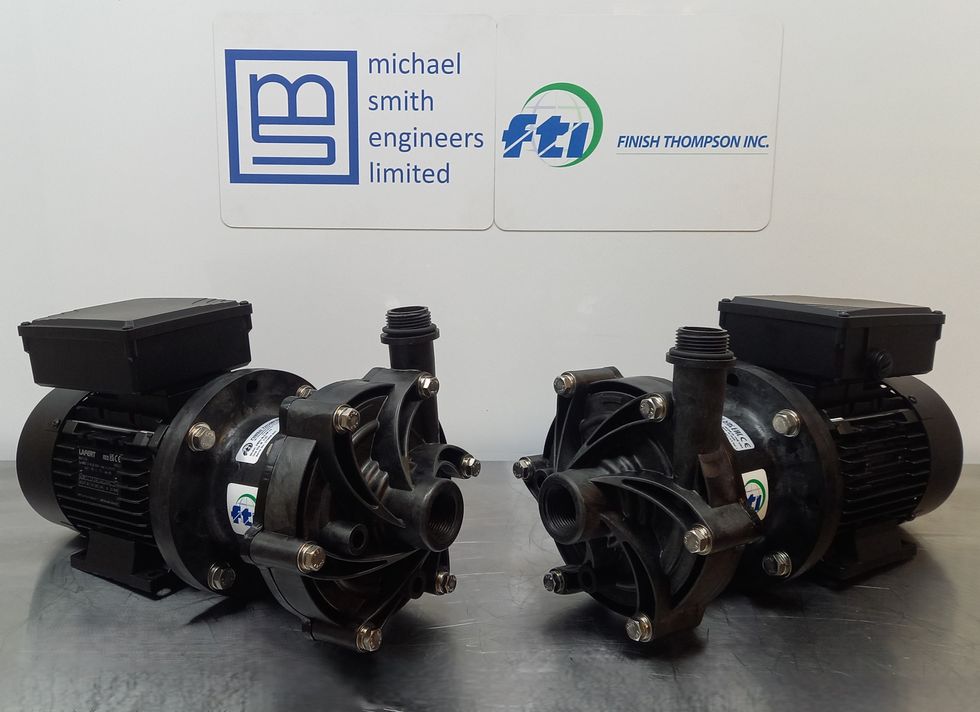 Supporting Green Hydrogen Production Two Finish Thompson DB6V seal-less mag-drive centrifugal pumps are on their way to a customer in the green hydrogen sector. These close coupled units will handle a proprietary cleaning fluid with a minimal workspace footprint, and the pump’s PVDF construction will ensure complete chemical resistance and safe handling of the corrosive process liquid. Finish Thompson DB series pump model DB6V-B-5-8P-74 complete with AEG 0.37 kW, 2 pole, 230 volt, 1 phase, 50 Hz, permanent capacitor IP55 motor. |